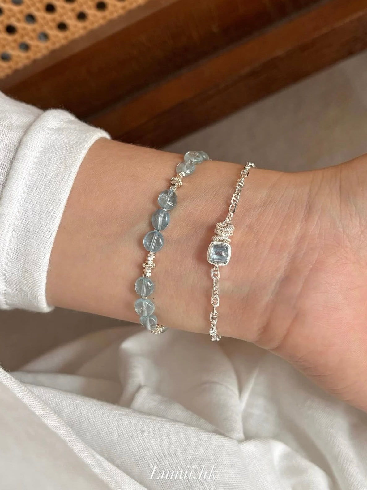 【海鹽碎冰冰】海藍寶+淡水珍珠+S925純銀|手鍊