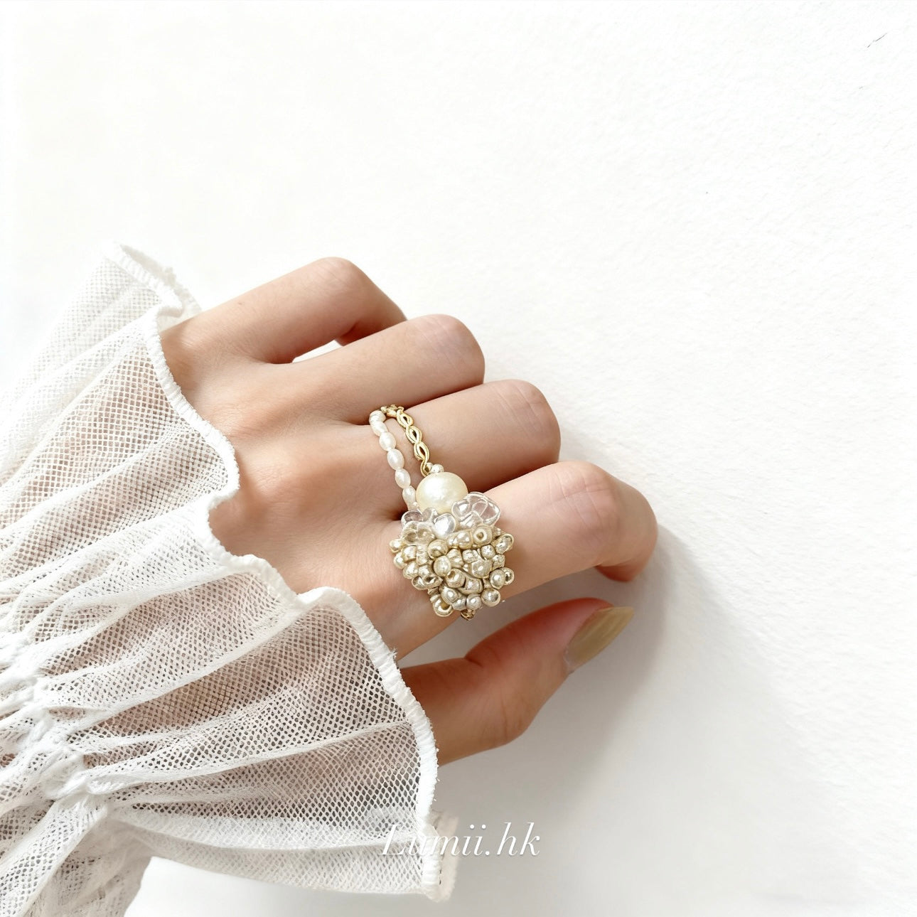 Layered with delicate beads, tiny crystals and a soft pearl — this cluster ring is the perfect blend of vintage charm and modern texture.Wear it alone for a subtle statement, or stack it with dainty pieces for that effortless romantic vibe ✨