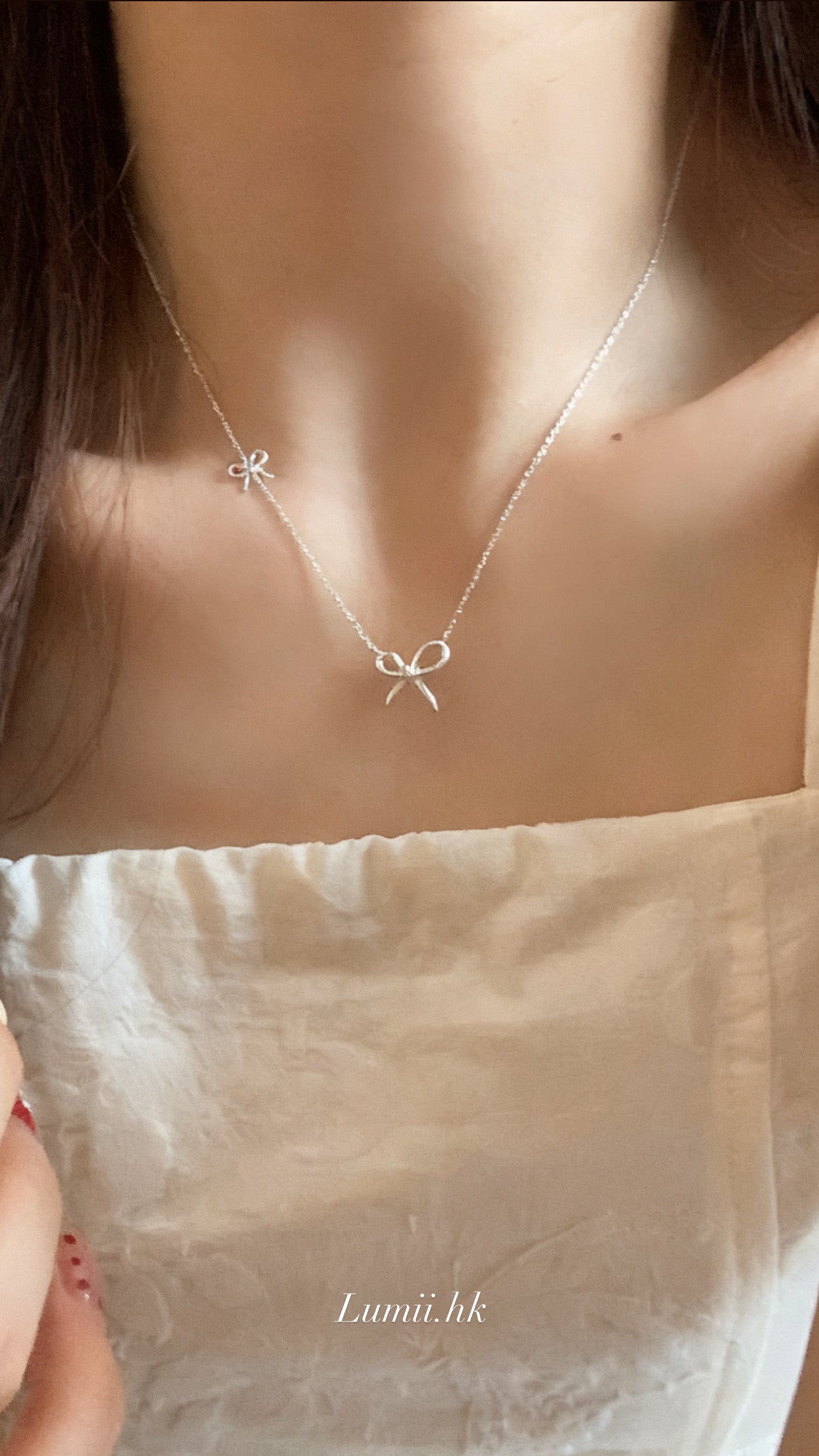 輕巧蝴蝶結頸鍊太適合日常!細鏈搭雙蝴蝶結設計,低調點綴鎖骨,少女感直接拉滿,點襯都好好睇~🎀